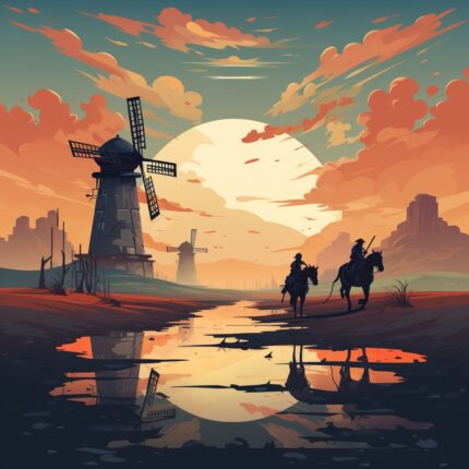 Dar Don Quijote nu-l mai asculta demult. Plecase deja să înfrunte umbrele uriașe care se învârteau cu putere.